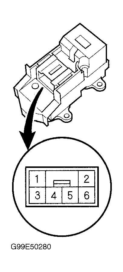 Remove passenger's door panel. See DOOR PANEL under REMOVAL & INSTALLATION. Remove the screws and the passenger's switch assembly. See Fig 1 . Remove the five mounting screws. Remove the passenger's switch (A) from the panel (B). See Fig 2 . Check for continuity between the terminals in each switch position. See Fig 3 . See PASSENGER'S POWER WINDOW SWITCH table.