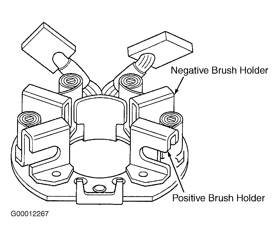 1. Using an ohmmeter, check continuity between positive and negative brush holders (brackets). See Fig 1 . Continuity should not exist. If continuity exists, brush holder assembly is shorted and must be replaced.