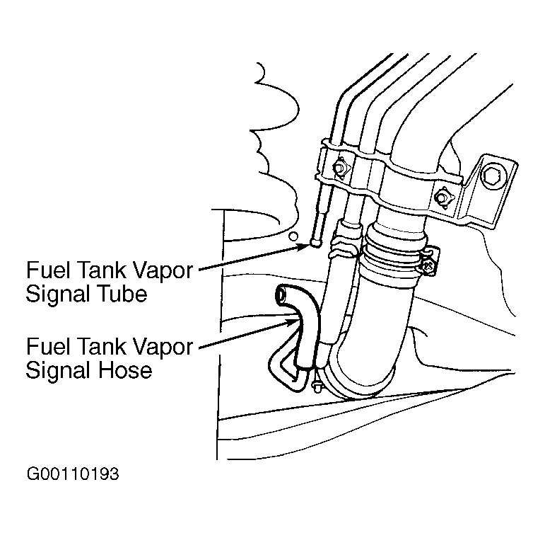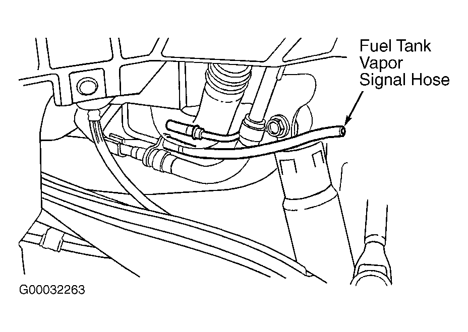 - Ensure fuel tank is less than half full. Remove fuel filler cap. Remove left rear inner fender. Disconnect fuel tank vapor signal hose. See Fig 1