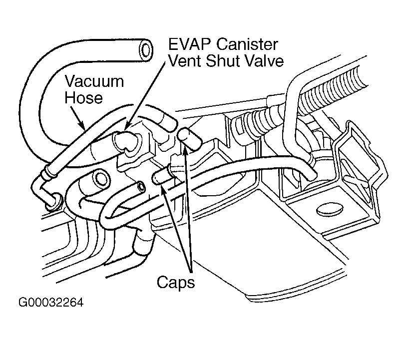 - Disconnect fuel tank vapor quick-connect fitting from EVAP canister. Cap port on canister. Reapply 80 pumps of vacuum with vacuum pump. If vacuum holds, replace fuel tank vapor control valve. See EMISSION SYSTEMS & SUB-SYSTEMS in REMOVAL, OVERHAUL & INSTALLATION article. If vacuum does not hold, check EVAP canister vent shut valve "O" ring. If "O" ring is okay, replace EVAP canister and go back to step 1 .