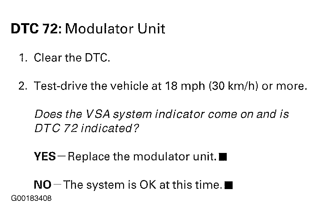 Home >> Acura >> 2002 >> 3.2CL Base >> Repair and Diagnosis >> External Pages >> Different variant/trim >> Section 1 (Vehicle Stability Assistance System) >> Diagnostic Tests >> DTC 72: Modulator Unit