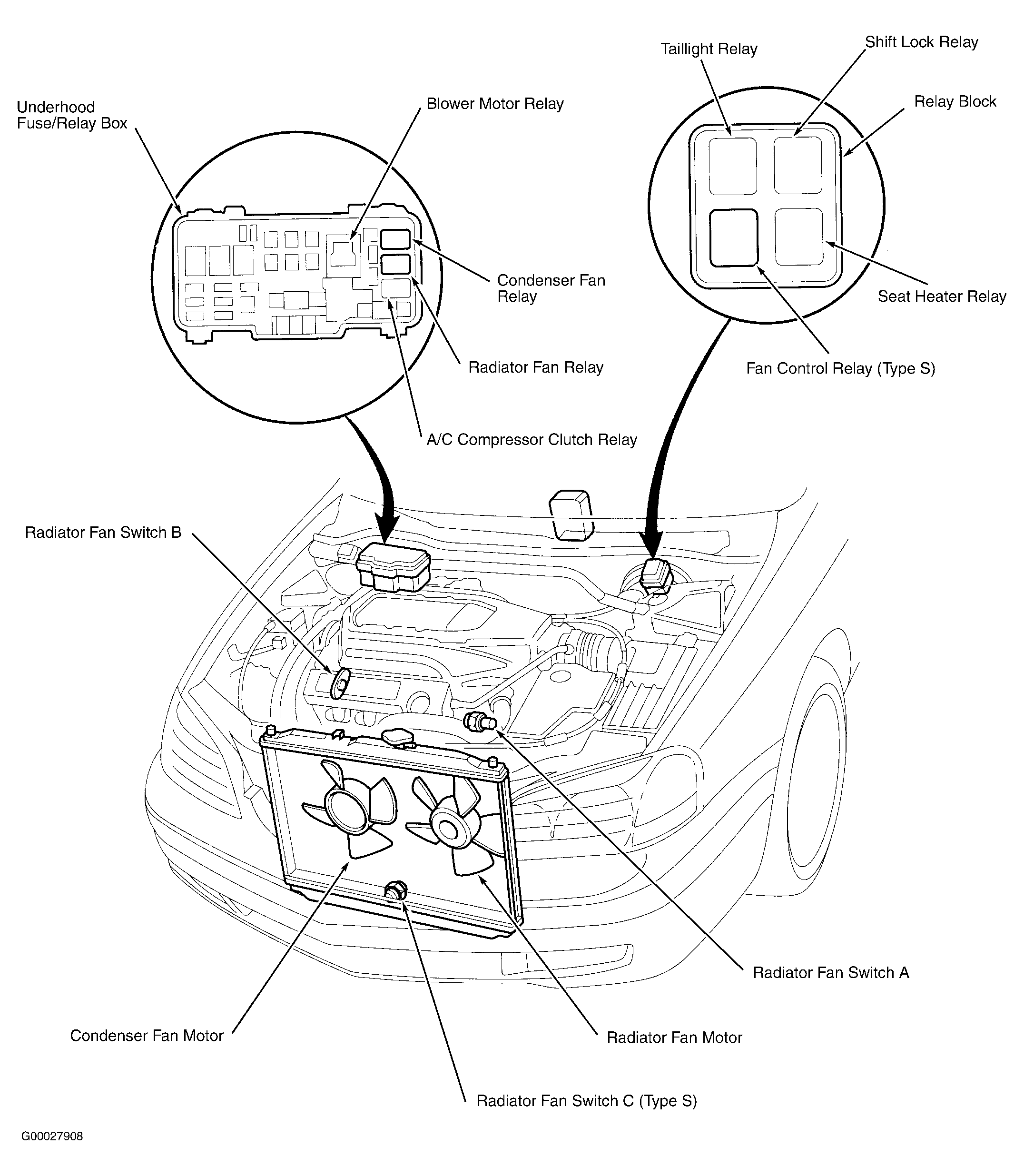 - Remove the shift lock relay. See Fig 2.