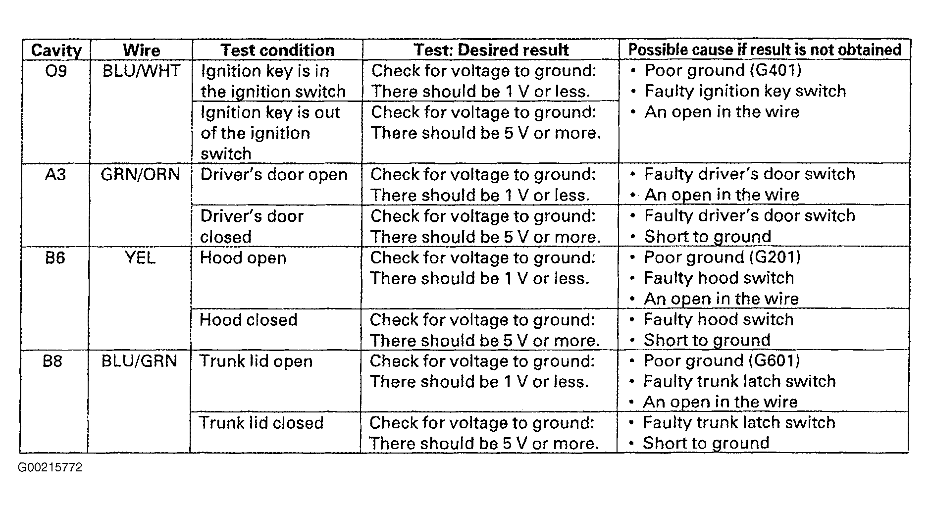 Home >> Acura >> 2002 >> 3.2TL Base >> Repair and Diagnosis (Single Page) >> Body & Frame >> Door Locks >> Anti-Theft & Keyless Entry Systems >> System Tests >> Multiplex Control Unit Tests >> Driver's Multiplex Control Unit
