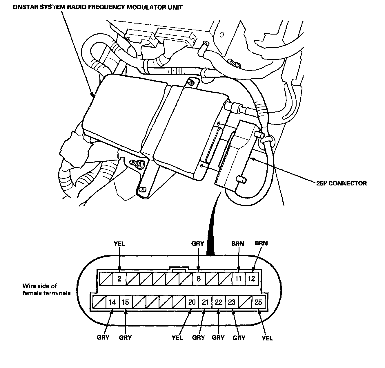 2. Disconnect the 12P connectors from the OnStar system radio frequency modulator unit.
