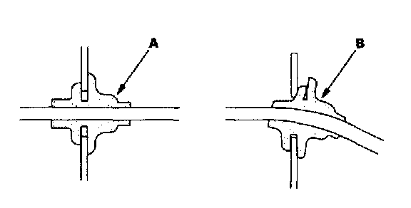 - Seat grommets in their grooves properly (A). Do not leave grommets distorted (B).