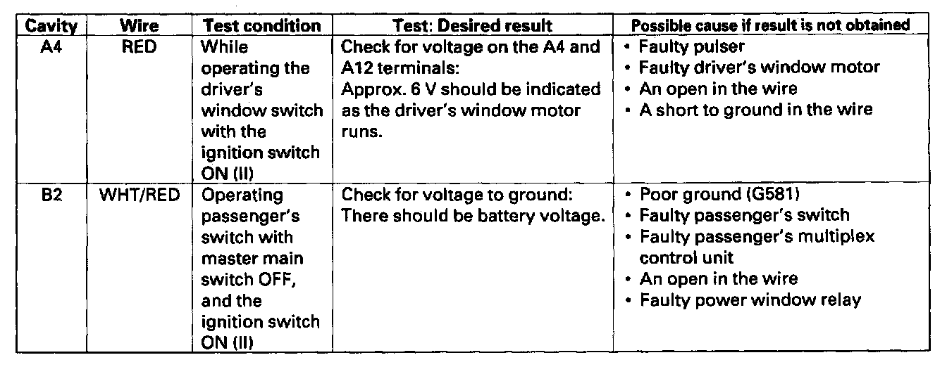 Home >> Acura >> 2002 >> CL V6-3.2L SOHC >> Repair and Diagnosis >> Windows and Glass >> Windows >> Power Window Control Module >> Testing and Inspection