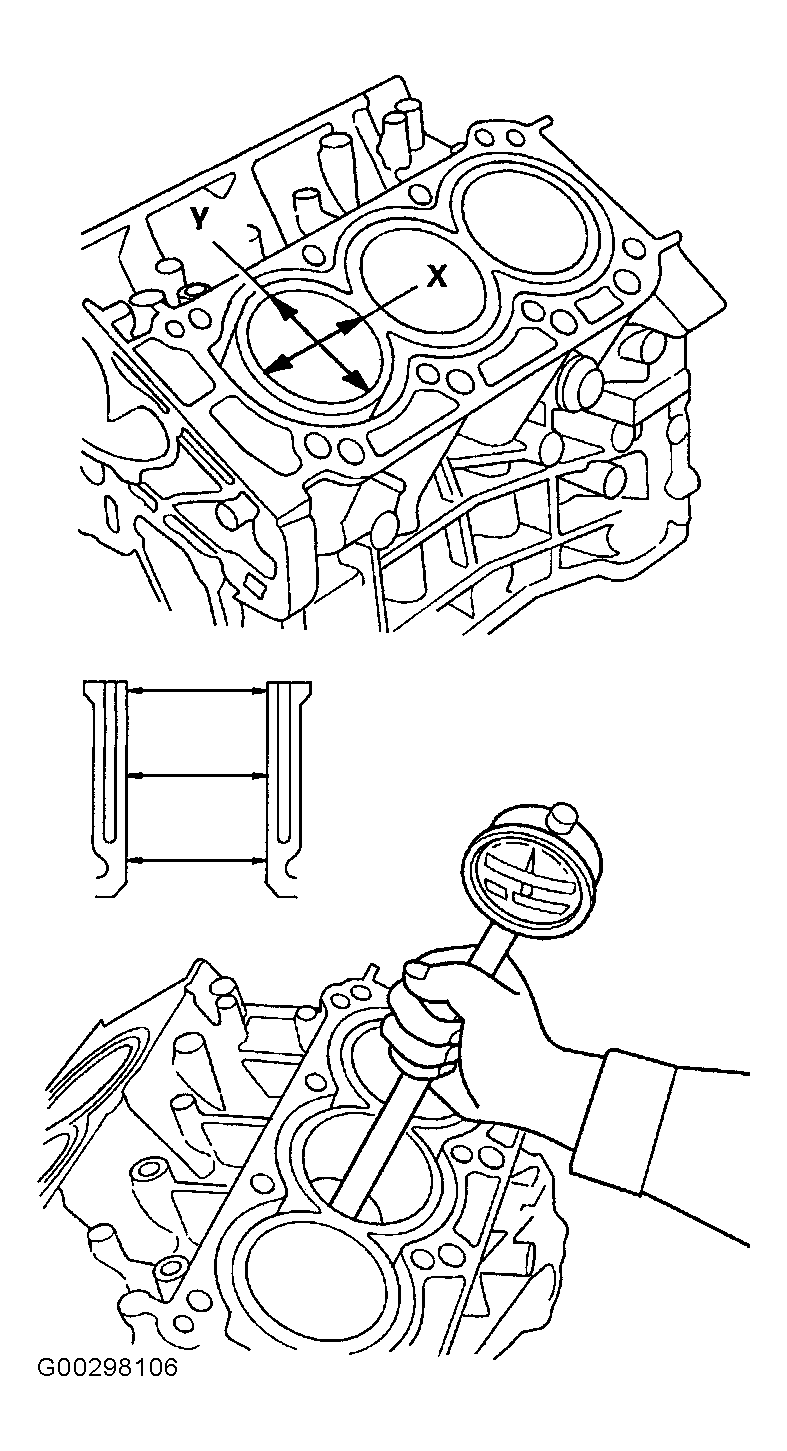 Application Specification - In. (mm) Piston Diameter Standard (New) 3.5029-3.5033 (88.975-88.985) Service Limit 3.5026 (88.965) Oversize Piston Diameter .25 3.5128-3.15132 (89.225-89.235) .50 3.5226-3.5230 (89.475-89.485) - Measure wear and taper in directions X and Y at three levels in each cylinder bore. See Fig 2.