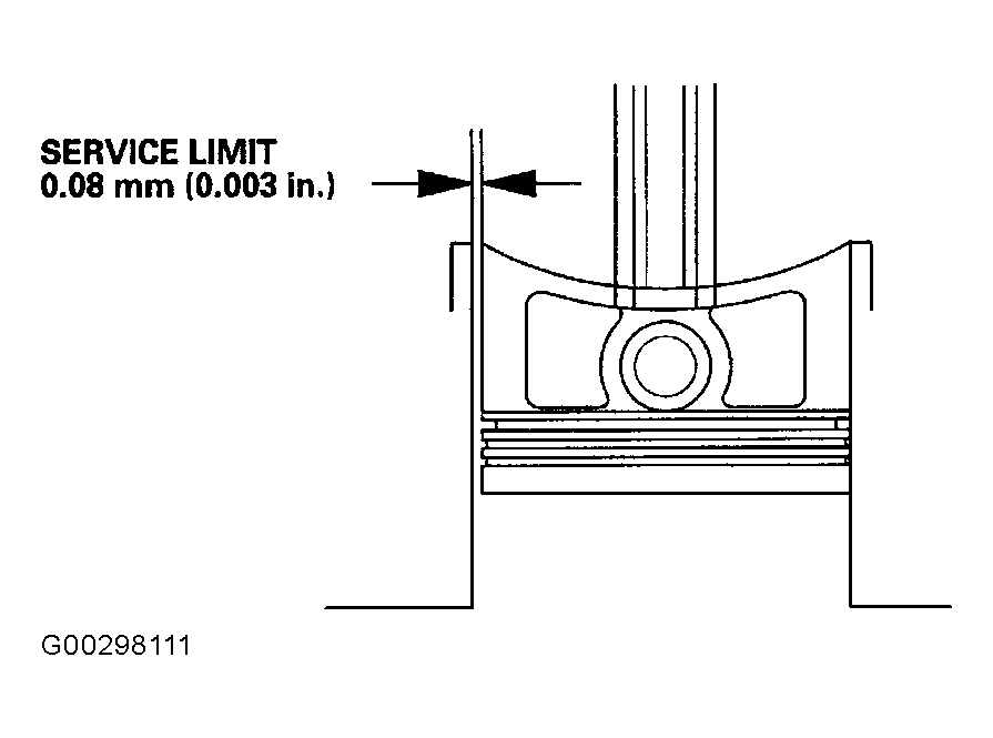 Application Specification - In. (mm) Standard (New) .003 (.07) Service Limit .004 (.10) - Calculate the difference between cylinder bore diameter and piston. See Fig 4 and PISTON-TO-BLOCK CLEARANCE table.PISTON-TO-BLOCK CLEARANCE
