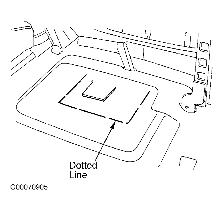 - Turn ignition switch off. Remove second row seat. Cut carpet on dotted line. See Fig 1