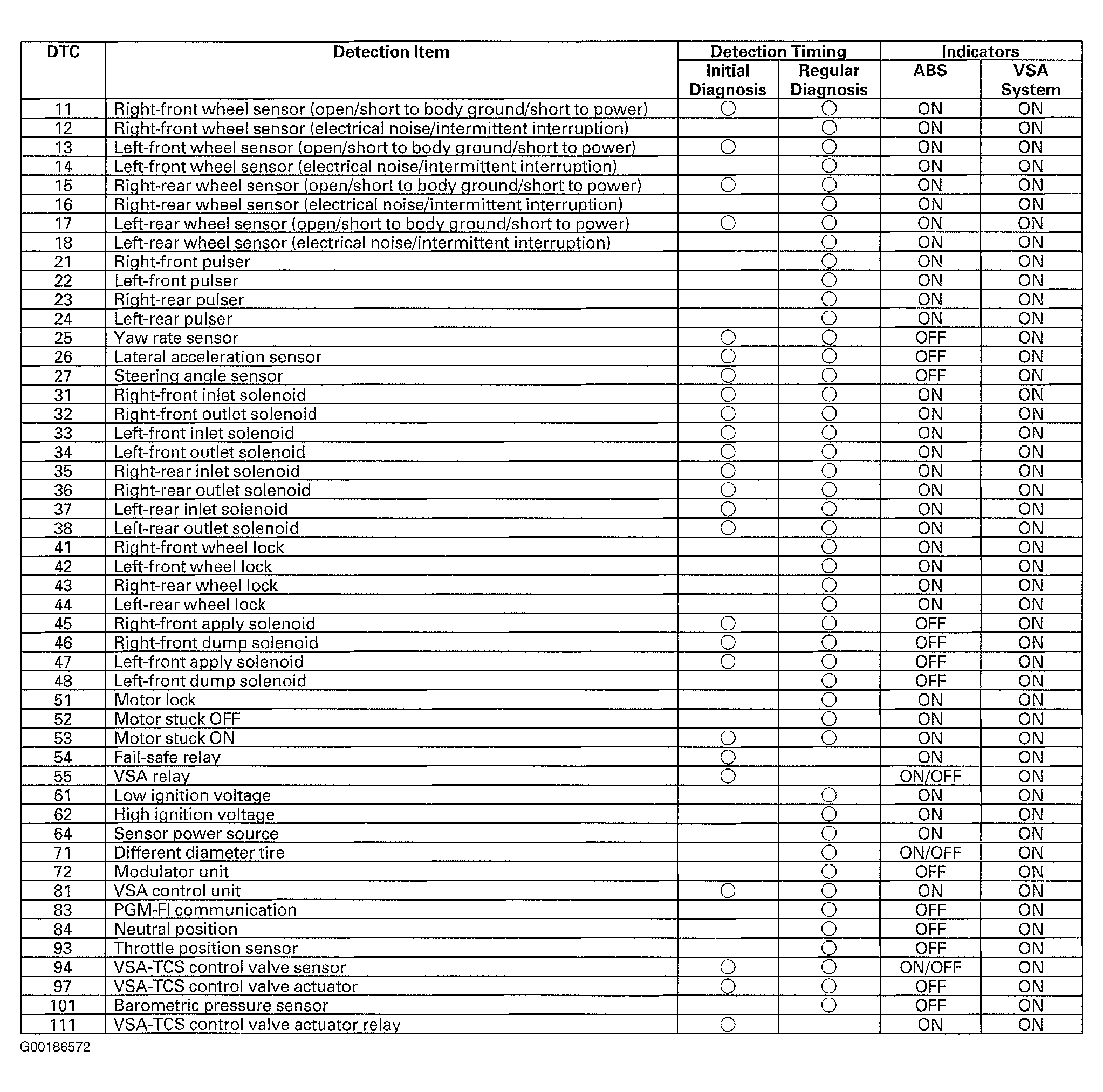 DTC 111  VSA-TCS CONTROL VALVE ACTUATOR RELAY
