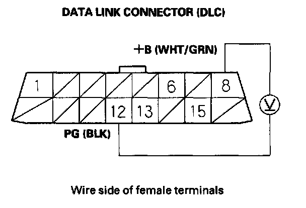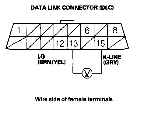 13. Measure voltage between DLC terminals No.13 and No.15.