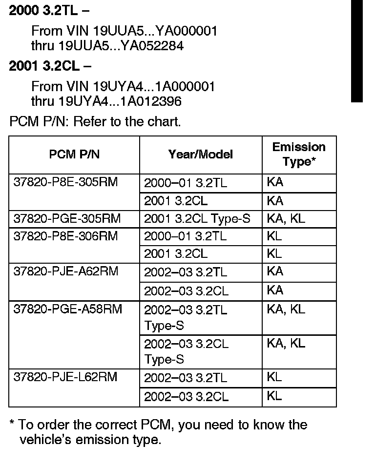 PCM Replacement: 3.2TL and 3.2CL