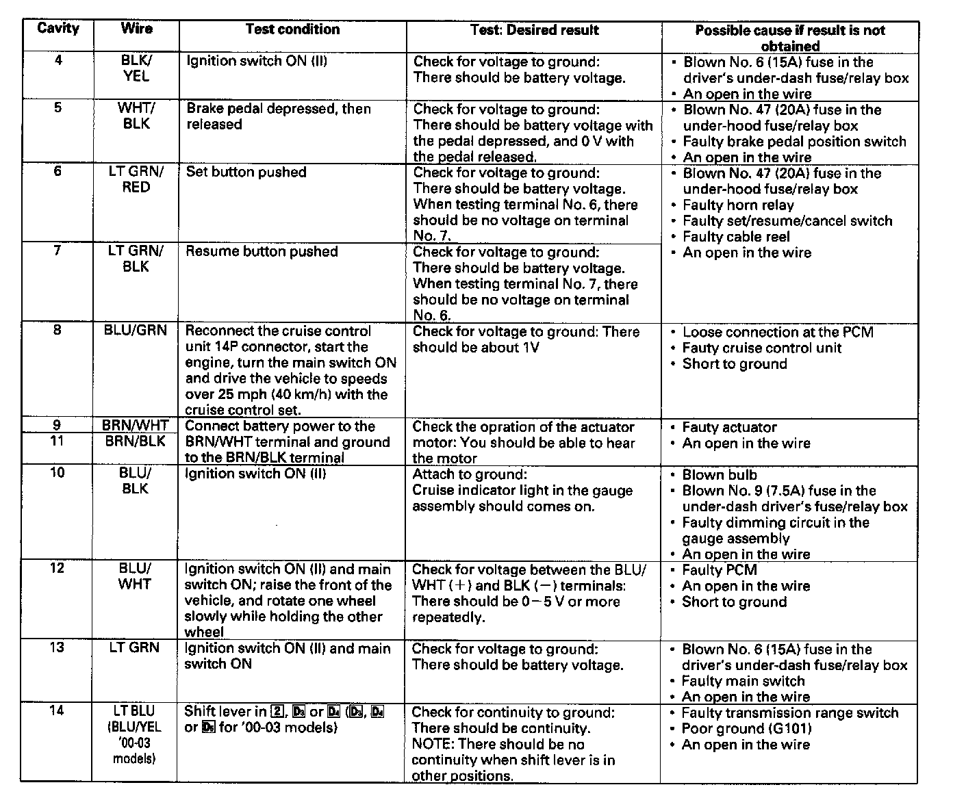 Home >> Acura >> 2003 >> 3.2TL V6-3.2L SOHC >> Repair and Diagnosis >> Cruise Control >> Cruise Control Module >> Testing and Inspection