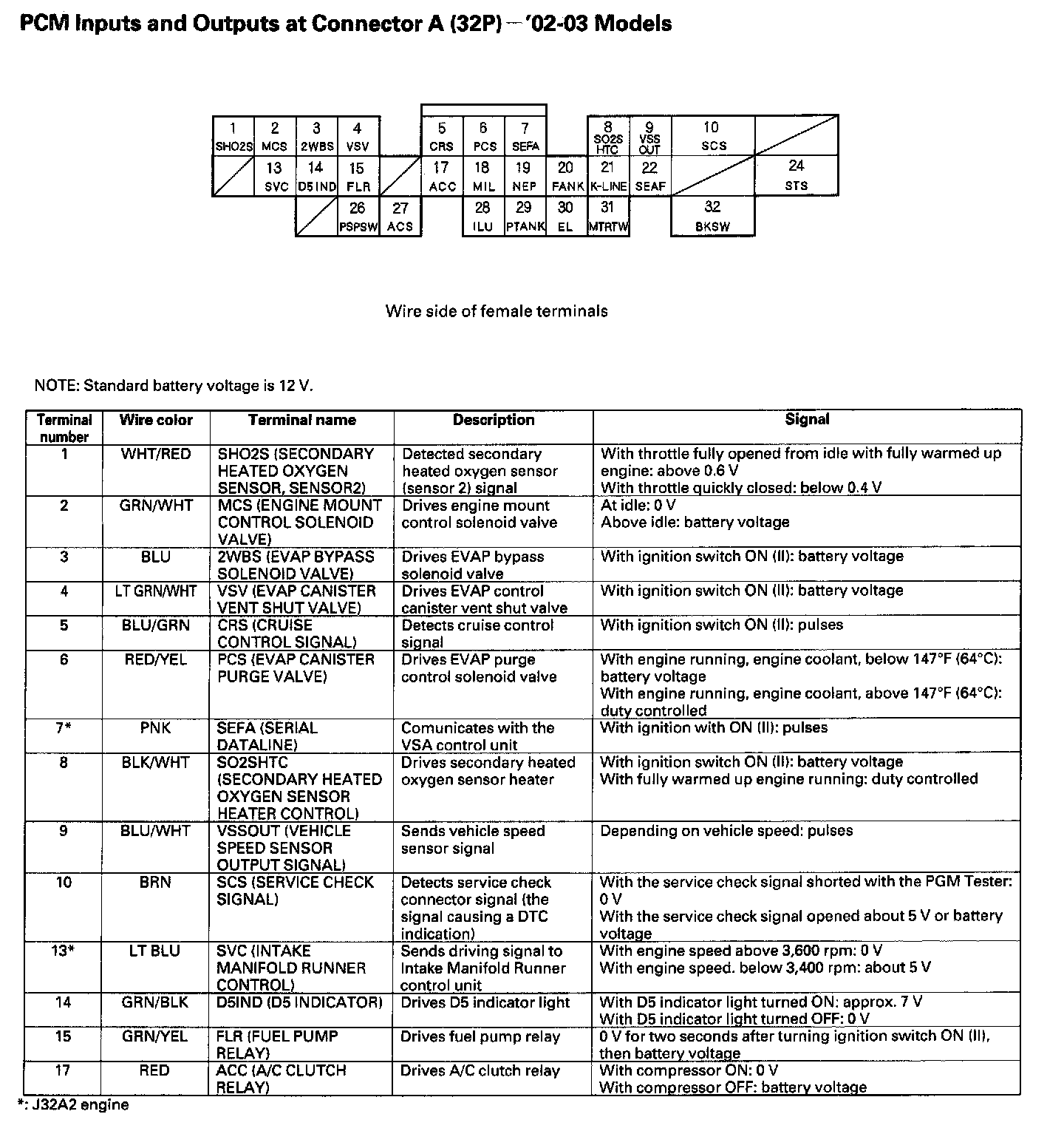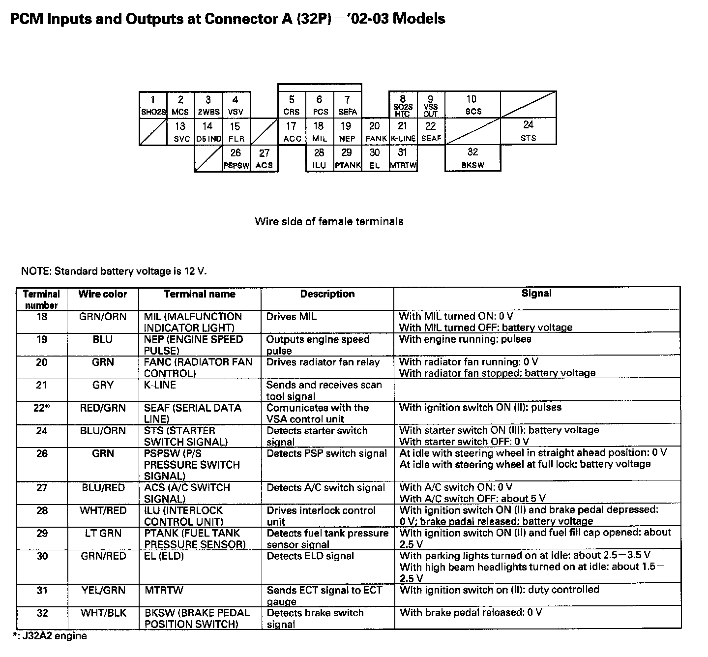 PCM Inputs And Outputs At Connector A (32P):