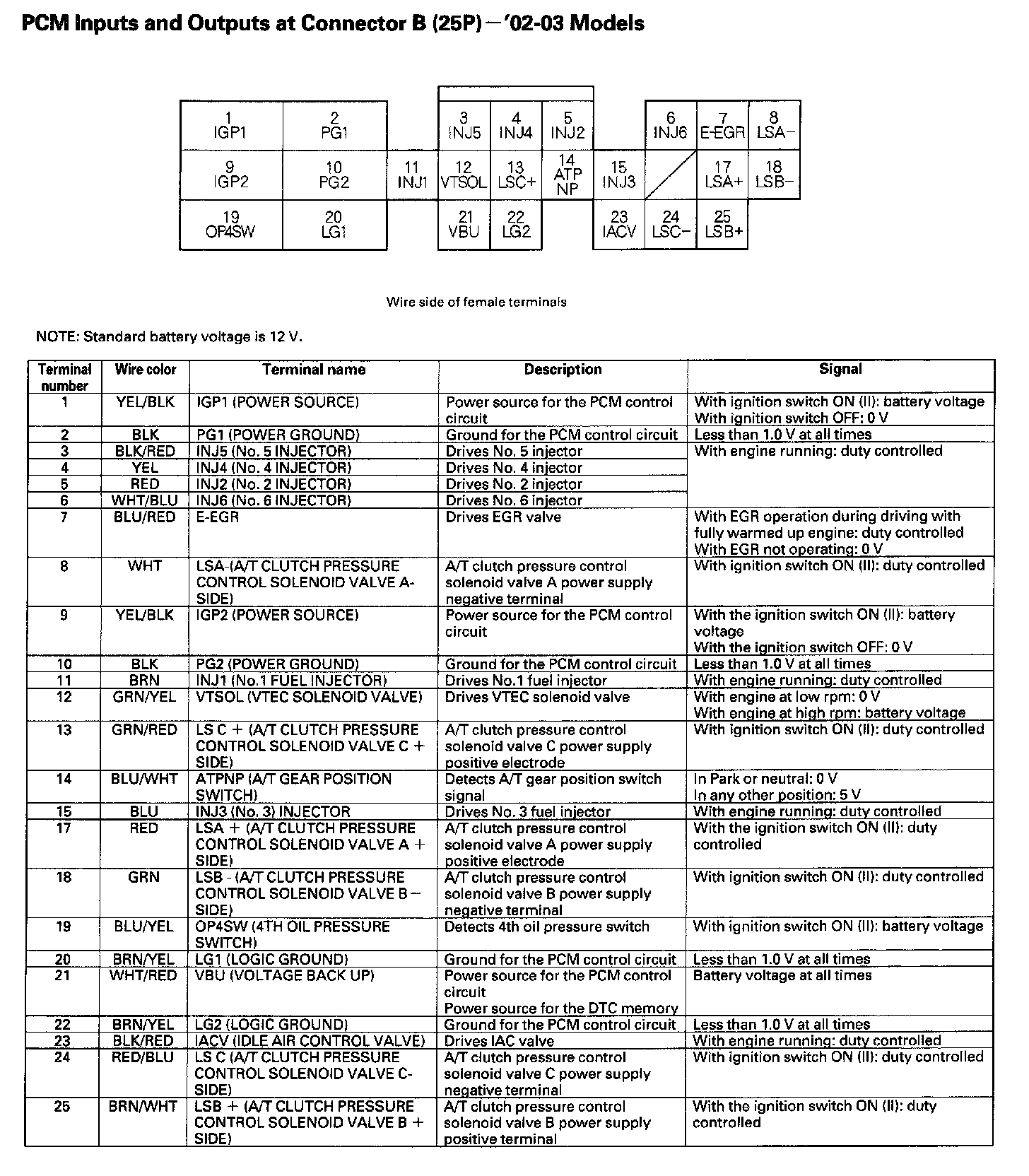 PCM Inputs And Outputs At Connector B (25P):