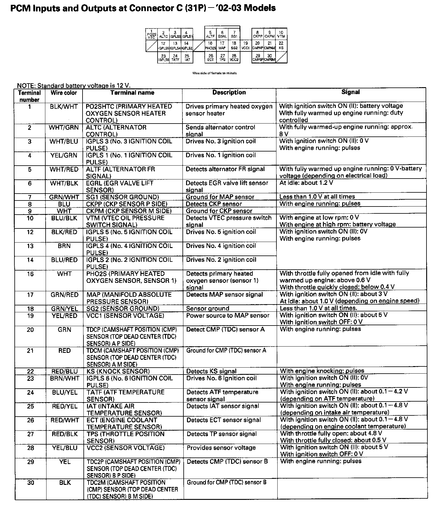 PCM Inputs And Outputs At Connector C (31P):