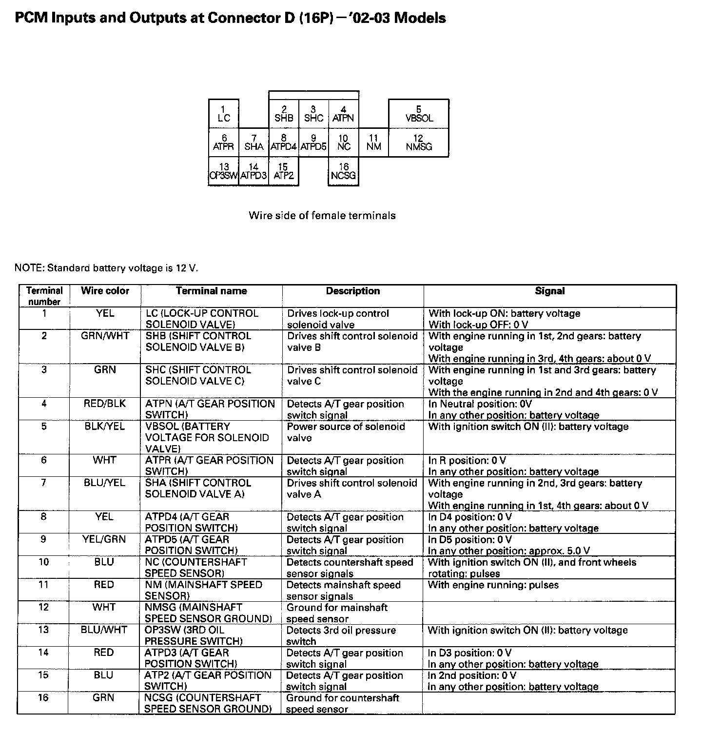 PCM Inputs And Outputs At Connector D (16P):