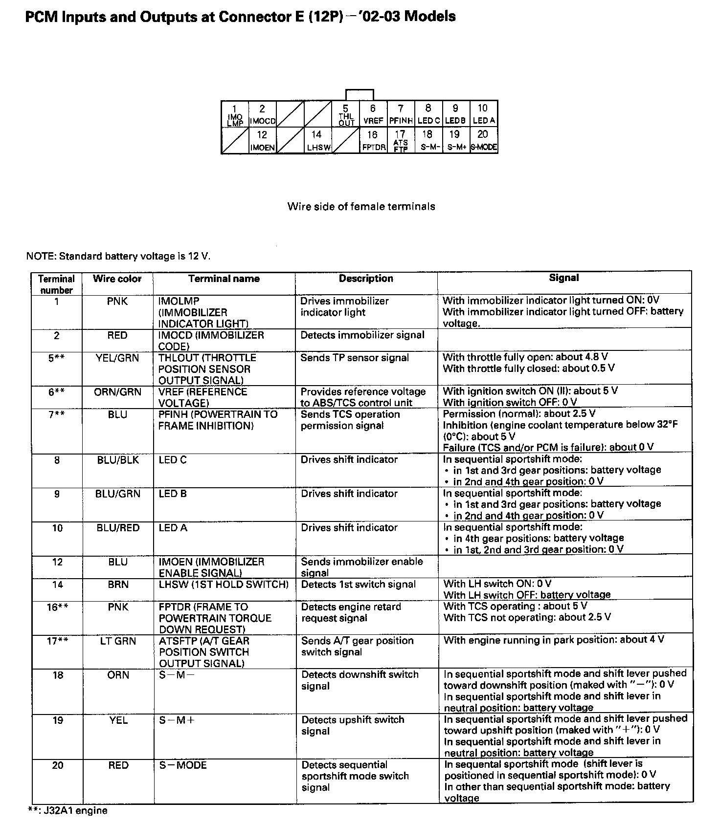 PCM Inputs And Outputs At Connector E (12P):