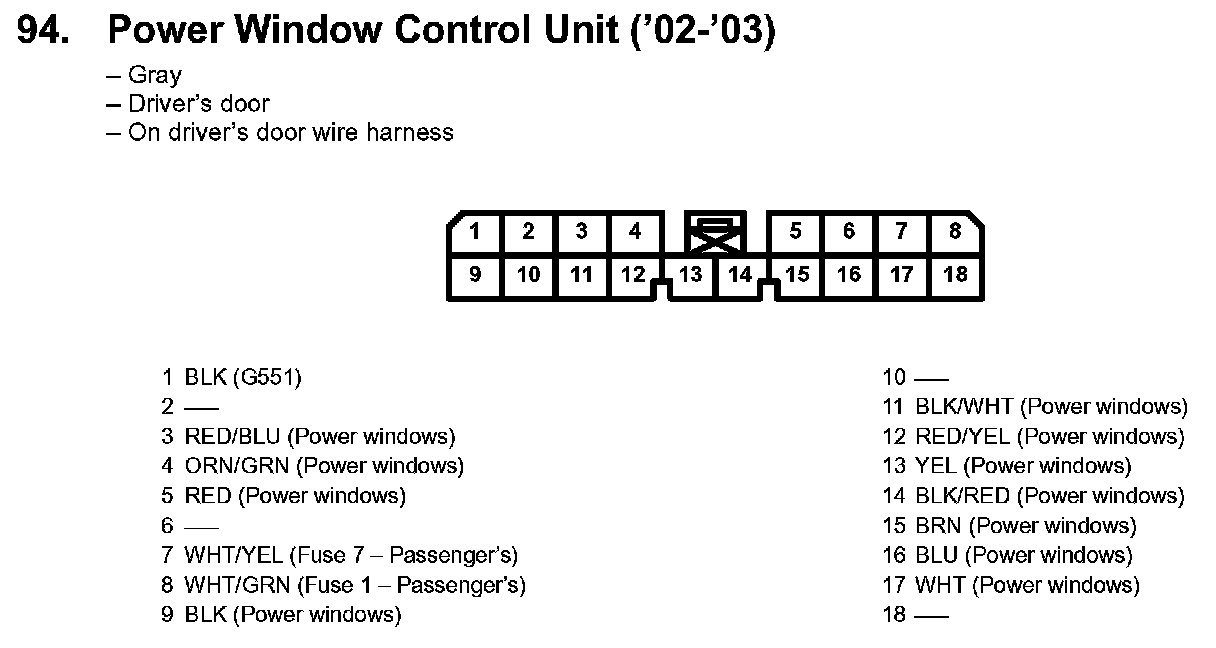 94. Power Window Control Unit: