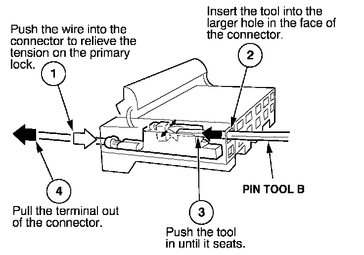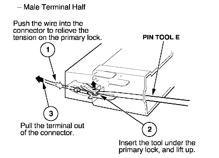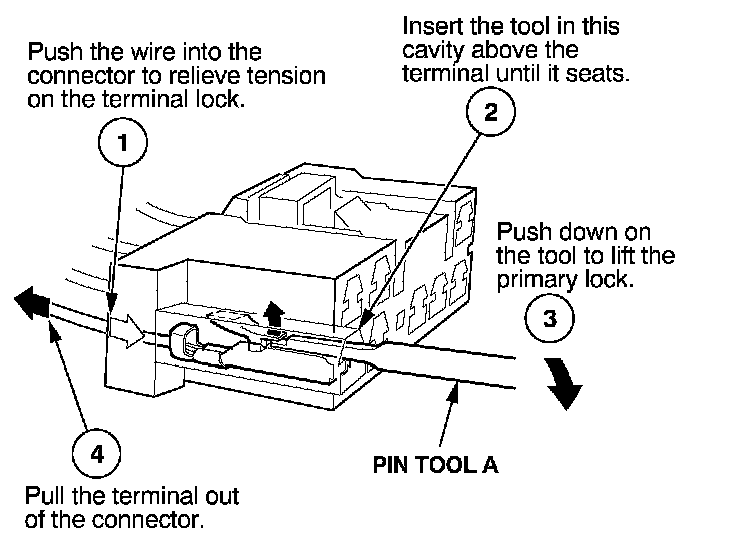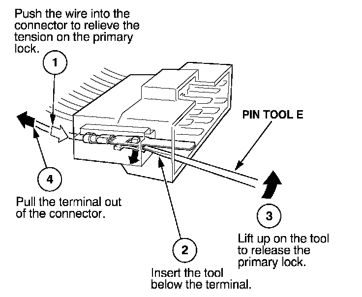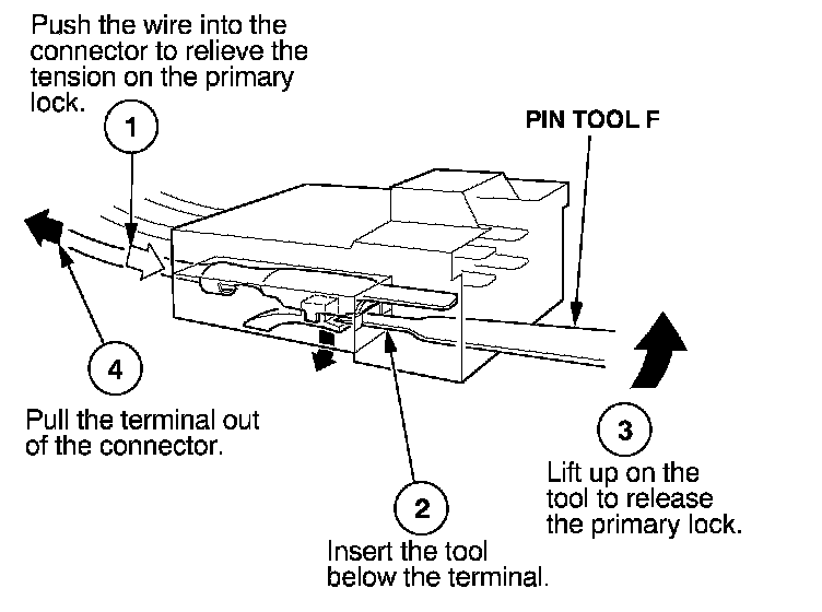 Before you begin, inspect the wire you are about to repair for damage and length. Make sure the wire will be long enough to make a terminal repair without stretching it when you reinstall the terminal in the connector. If the wire is too short, or if access to the connector is too restricted to make a terminal repair, you may need to install a pigtail terminal (a short length of wire with a factory-crimped terminal on it). Refer to HOW TO INSTALL PIGTAIL TERMINALS.