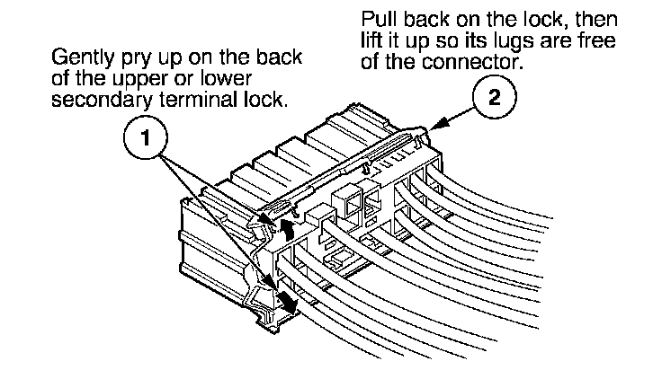 - If it has a secondary terminal lock, go to Connectors With a Secondary Lock. A secondary lock, found on most connectors on some models, is an additional locking device on the connector housing as a backup for the primary lock on the terminal.
