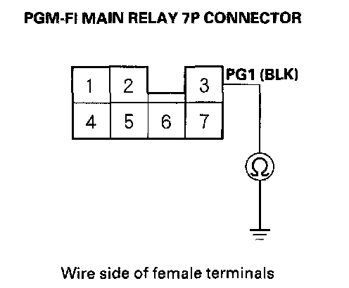 3. Check for continuity between body ground and PGM-FI main relay 7P connector terminal No.3.