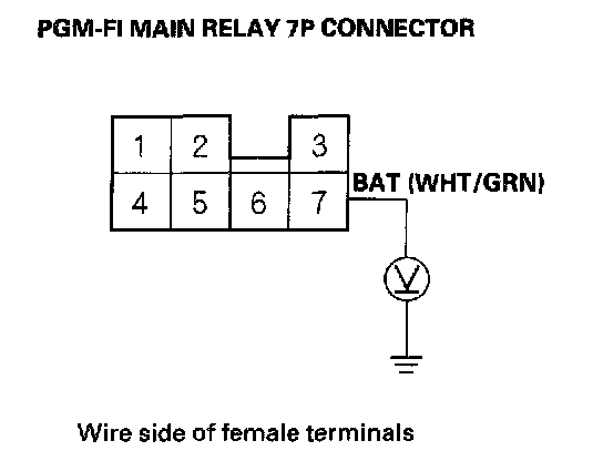 4. Measure voltage between body ground and PGM-FI main relay 7P connector terminal No.7.