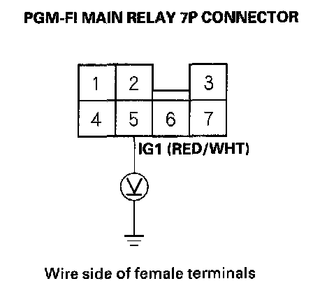 7. Measure voltage between body ground and PGM-FI main relay 7P connector terminal No.5.