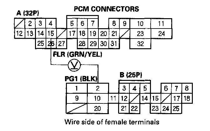 14. Reconnect the PCM connector A (32P) and the PGM-FI main relay 7P connector.