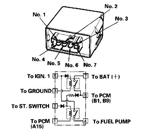 13. Check for continuity between PGM-FI main relay 7P connector terminal No.1 and PCM connector terminal A15.