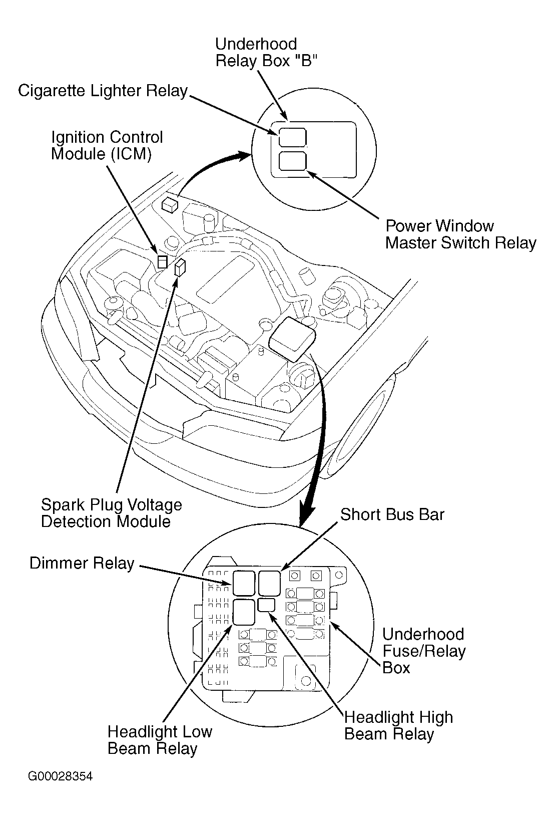 Underhood Relay Box "B" On right rear corner of engine compartment. See Figure .