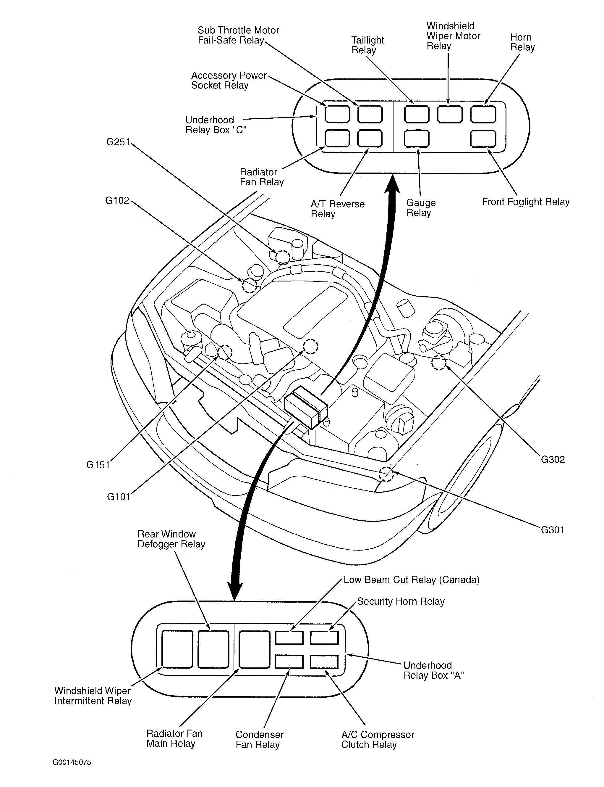 Underhood Relay Box "A" On left front of engine compartment. See Figure .