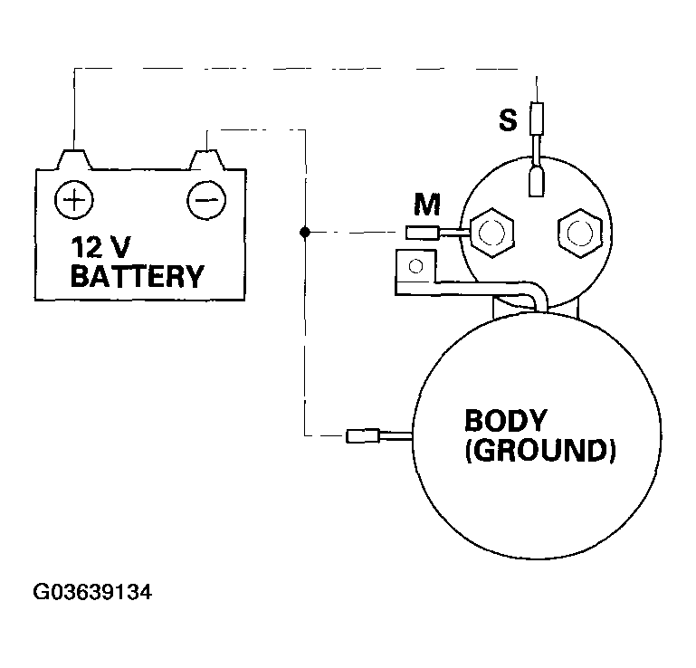 - Disconnect the negative battery terminal from the M terminal. If the pinion does not retract, the hold-in coil of the solenoid is working properly.