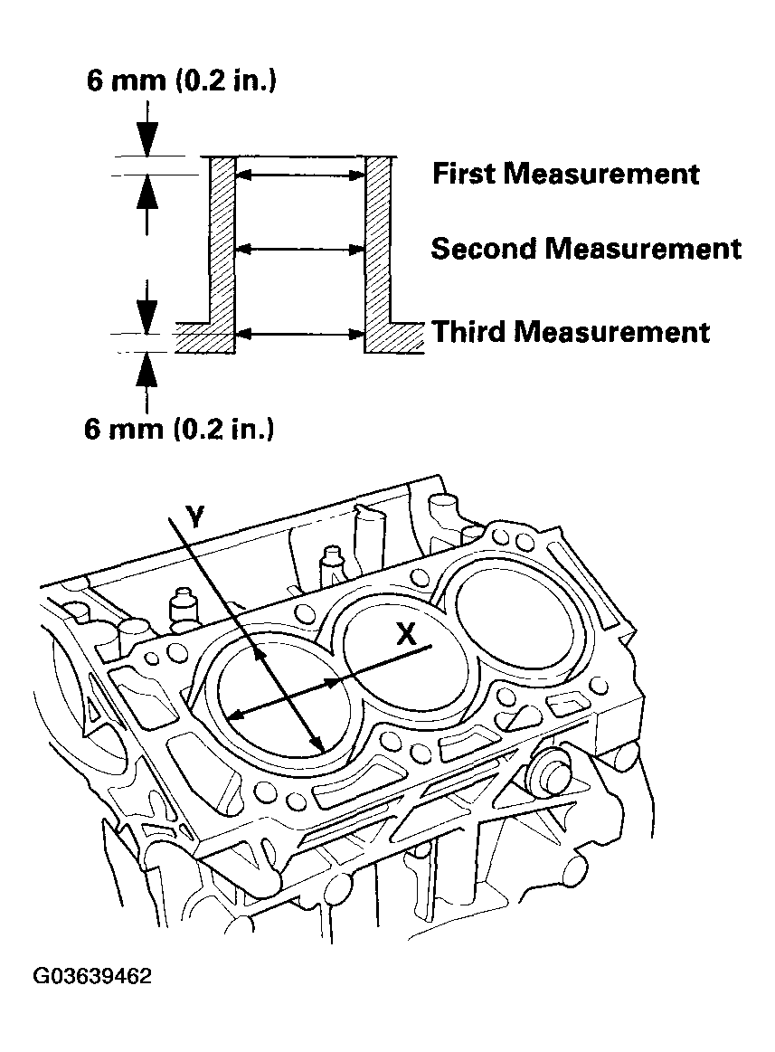 - Measure wear and taper in direction X and Y at three levels in each cylinder as shown in Fig 2