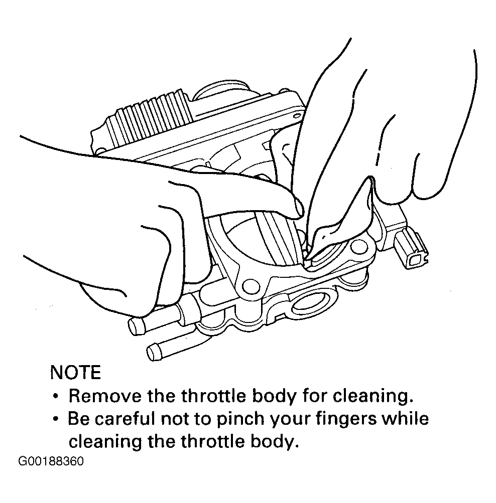 DO NOT insert your fingers into installed throttle body when you turn ignition on or when ignition is on. Serious injury to your fingers will result if throttle valve is activated.
