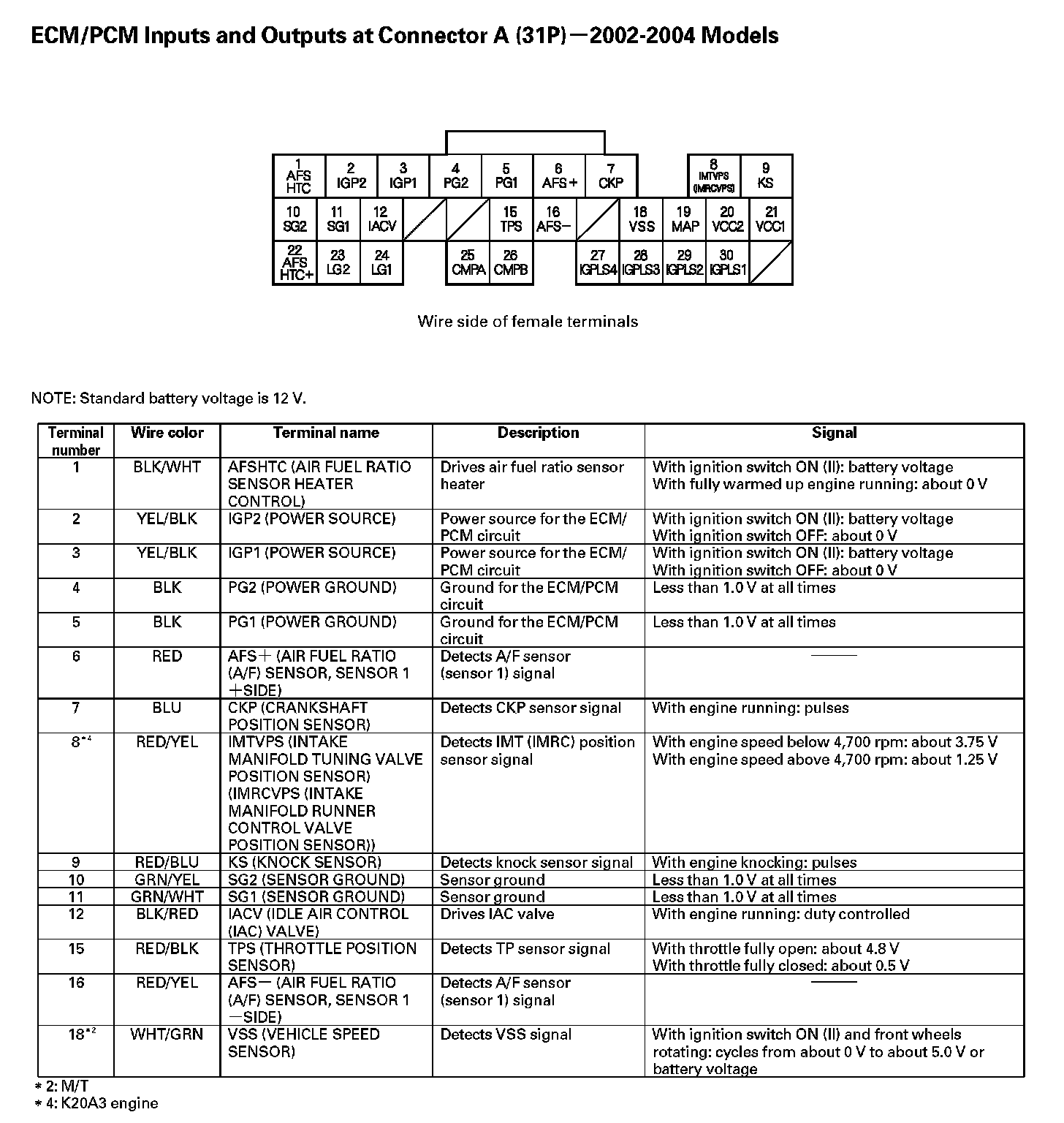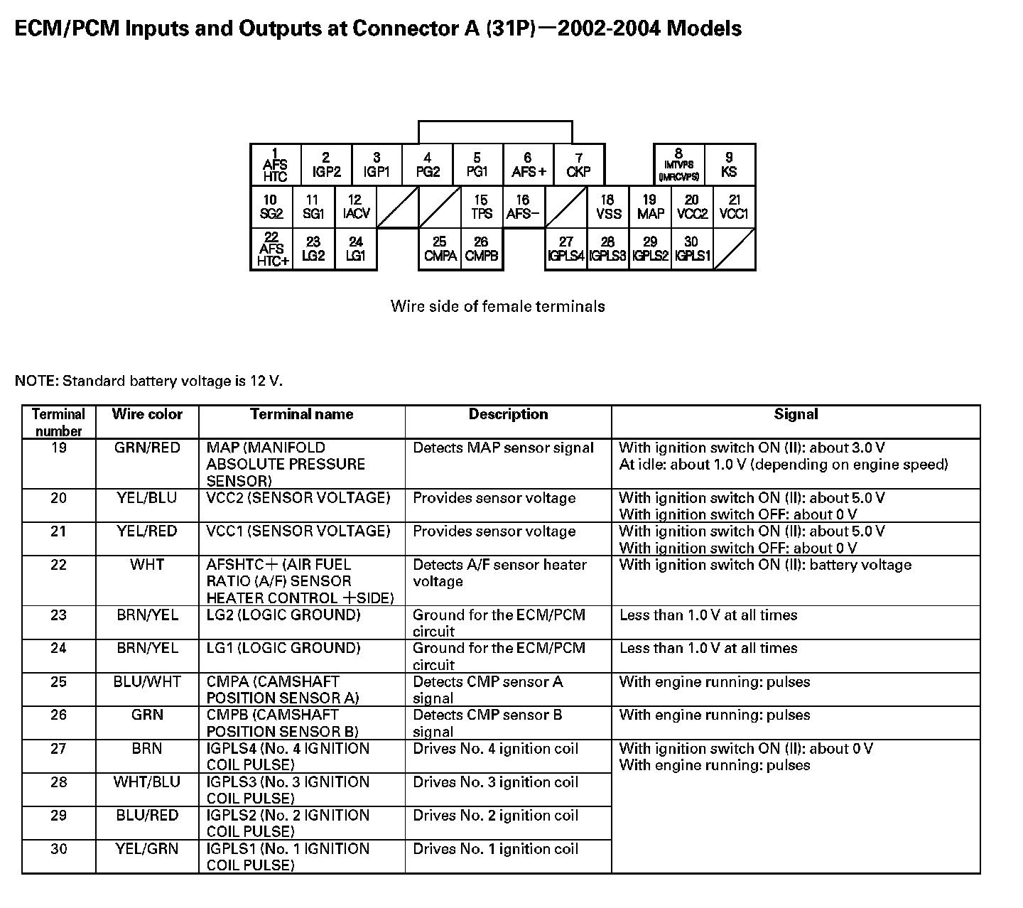 Home >> Acura >> 2003 >> RSX L4-2.0L >> Repair and Diagnosis >> Powertrain Management >> Computers and Control Systems >> Relays and Modules - Computers and Control Systems >> Engine Control Module >> Diagrams >> Connector Views >> ECM/PCM Inputs and Outputs