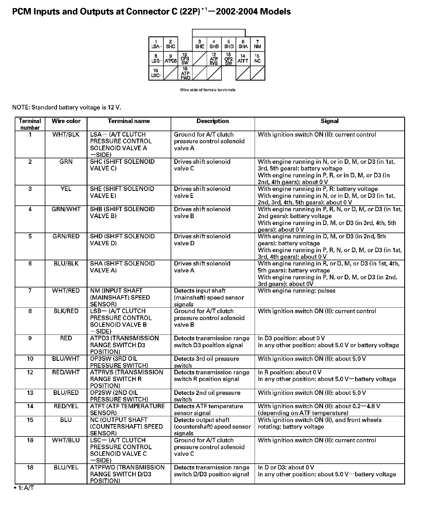 PCM Inputs And Outputs At Connector C (22P):