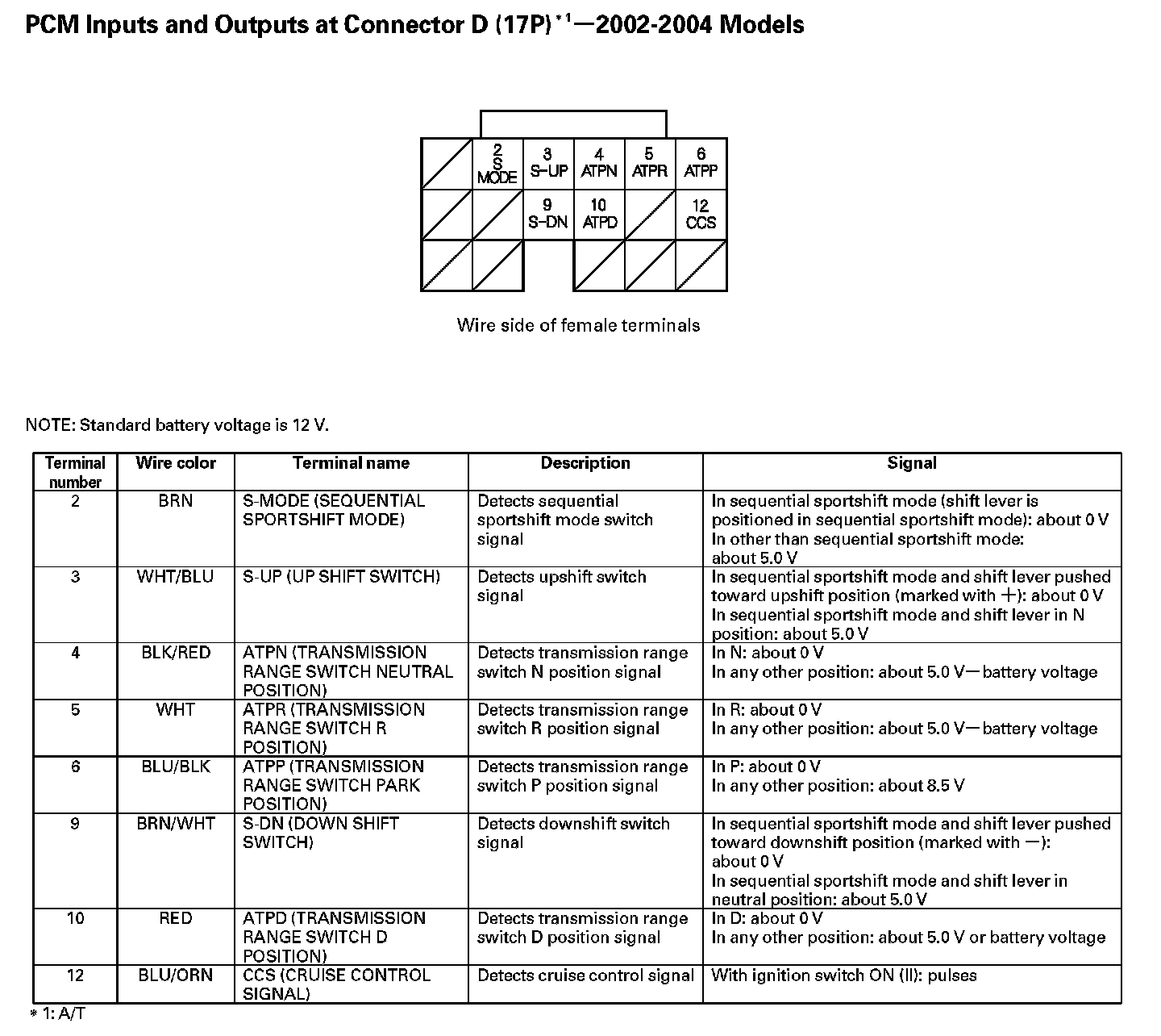 PCM Inputs And Outputs At Connector D (17P):