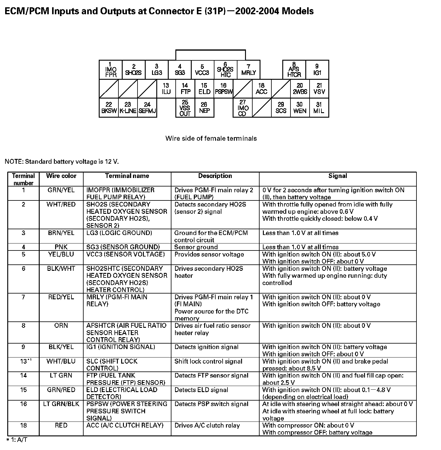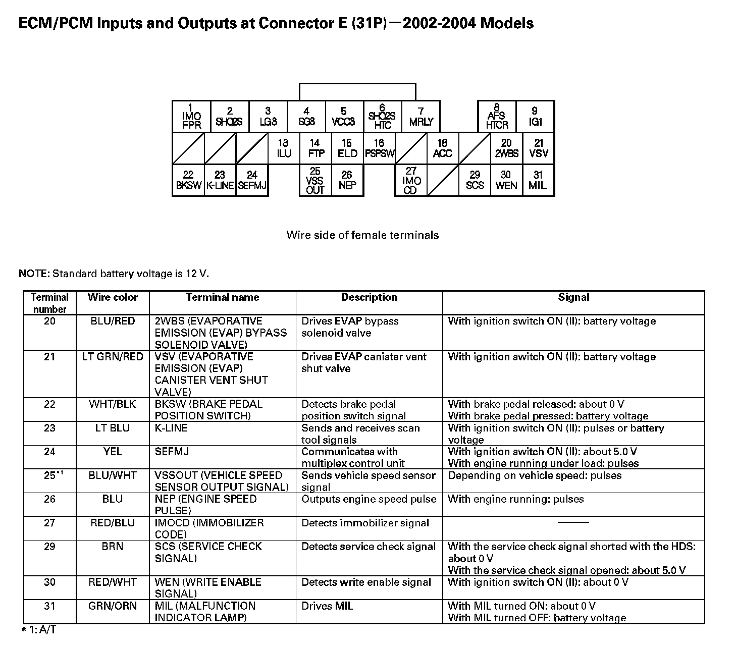 ECM/PCM Inputs And Outputs At Connector E (31P) - Part 1: