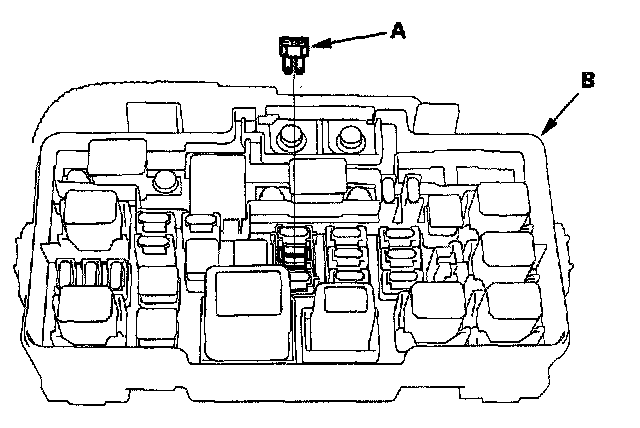 - Turn the ignition switch OFF, and remove the No.6 ECU (ECM/PCM) (15 A) fuse (A) from the under-hood fuse/relay box (B) for 10 seconds.
