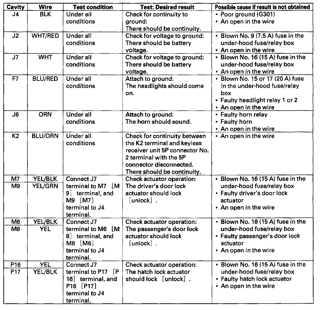 Home >> Acura >> 2004 >> RSX L4-2.0L >> Repair and Diagnosis >> Body and Frame >> Locks >> Keyless Entry >> Keyless Entry Module >> Testing and Inspection