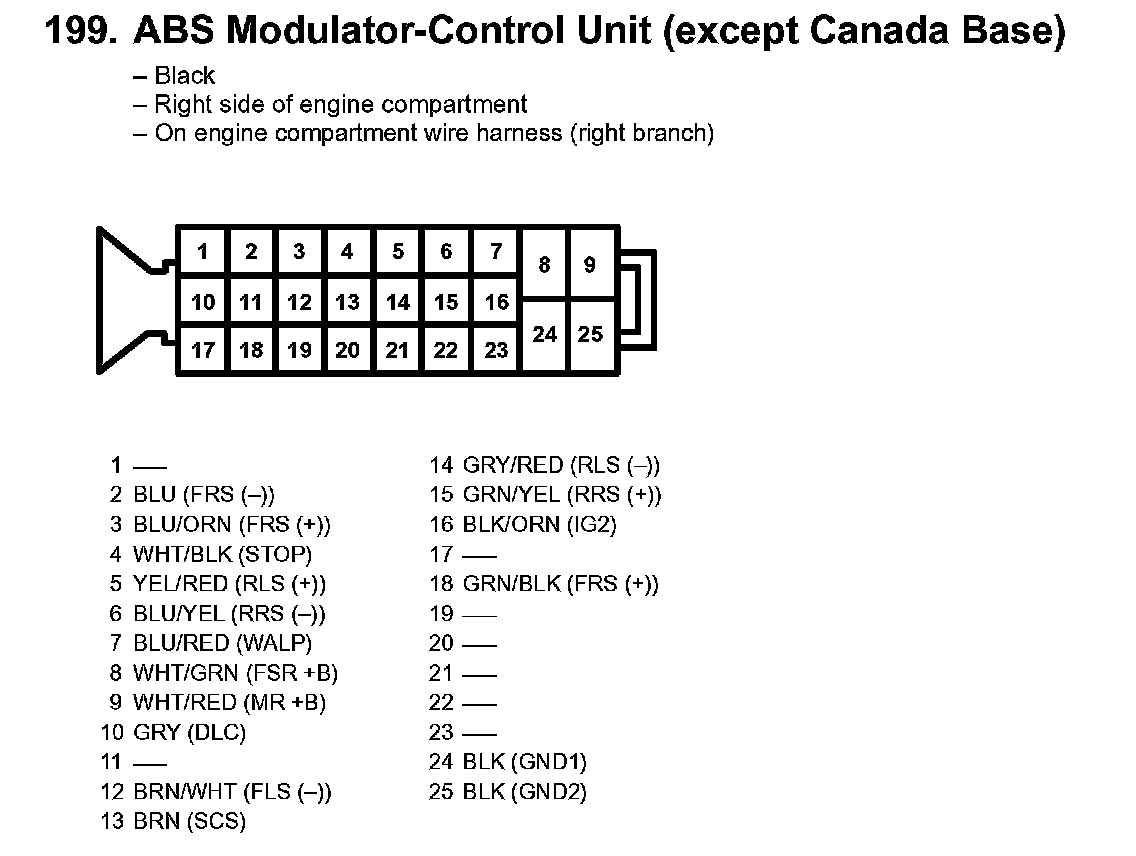 199. ABS Modulator-Control Unit (Except Canada Base):