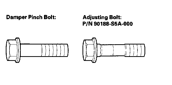NOTE: The camber angle can be adjusted up to ± 15' (center of tolerance) by replacing one damper pinch bolt with the adjusting bolt. The camber angle can be adjusted up to ± 30' by replacing both upper and lower damper pinch bolts with the adjusting bolts.