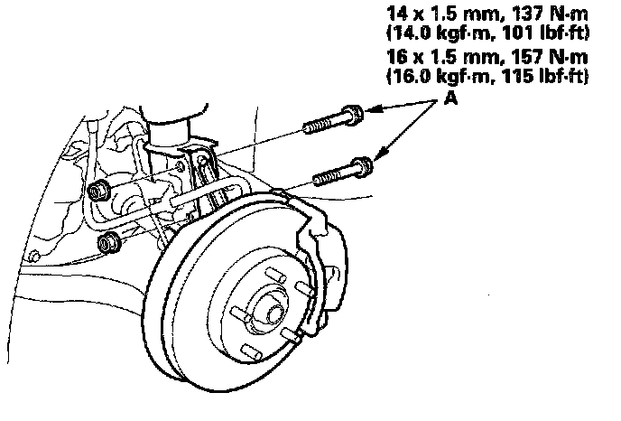 7. Replace the damper pinch bolts with the adjusting bolts (A), and adjust the camber angle.
