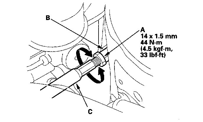 4. Turn the tie-rod end (C) until the toe is correct.