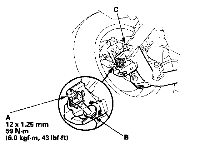 NOTICE: Do not loosen the special bolts (C) on the trailing arm.