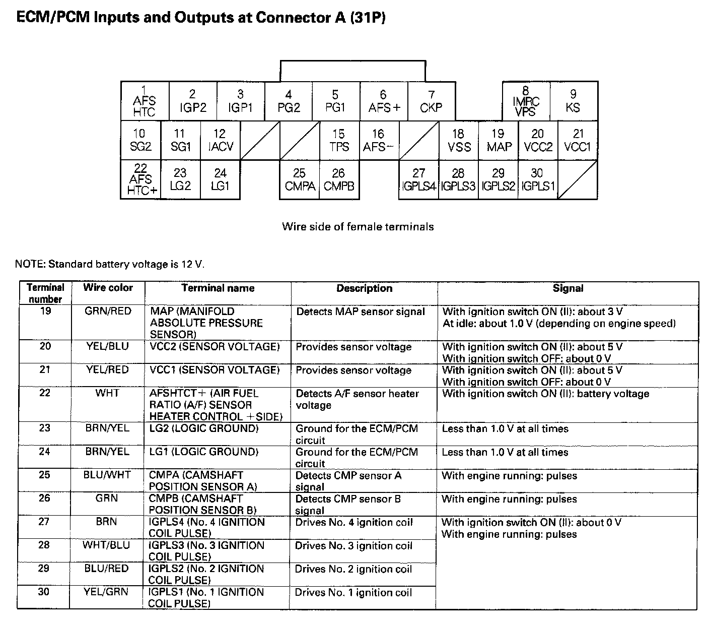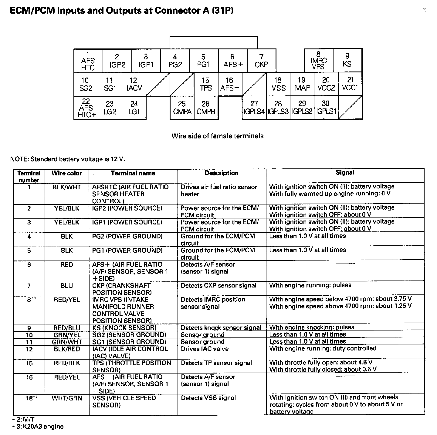 ECM/PCM Inputs And Outputs At Connector A (31P) Part 1: