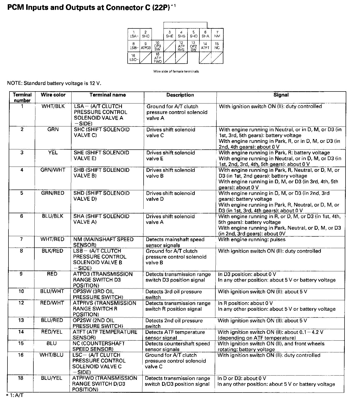 ECM/PCM Inputs And Outputs At Connector C (22P):