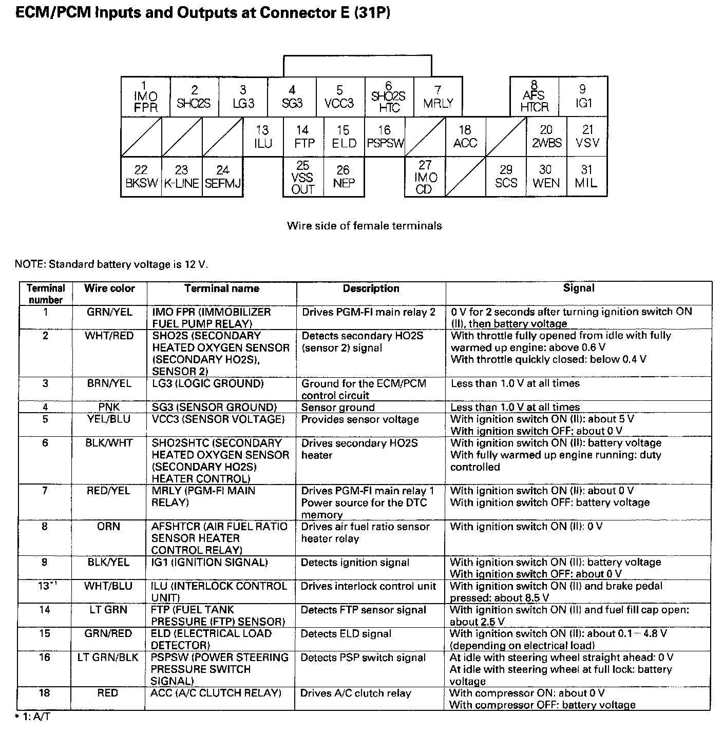 ECM/PCM Inputs And Outputs At Connector E (31P) Part 2: