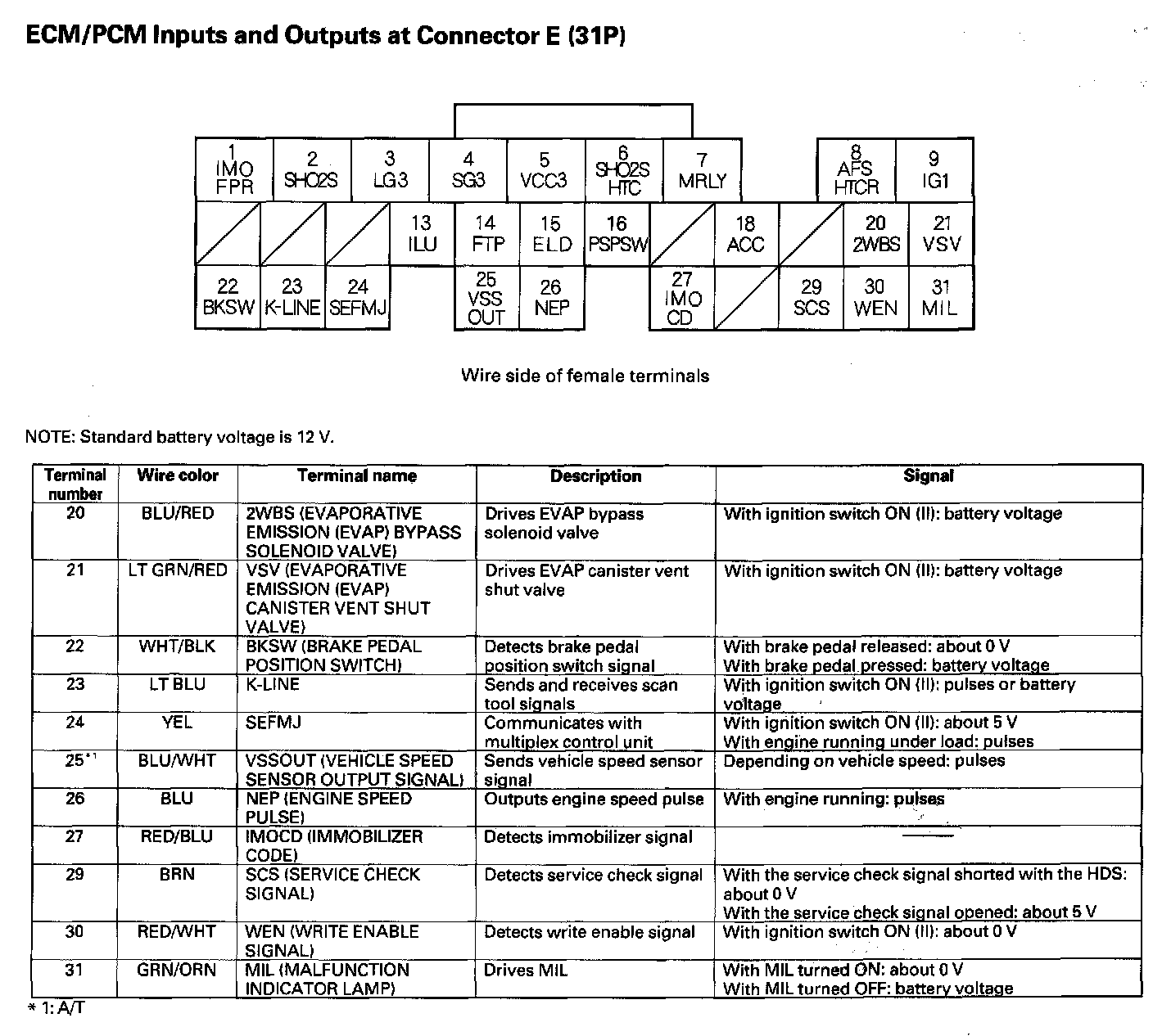 ECM/PCM Inputs And Outputs At Connector E (31P) Part 1: